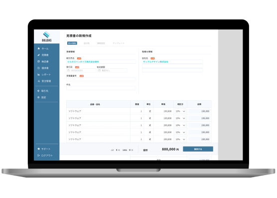 BILLDASは見積書・発注書・納品書・請求書の作成が可能。